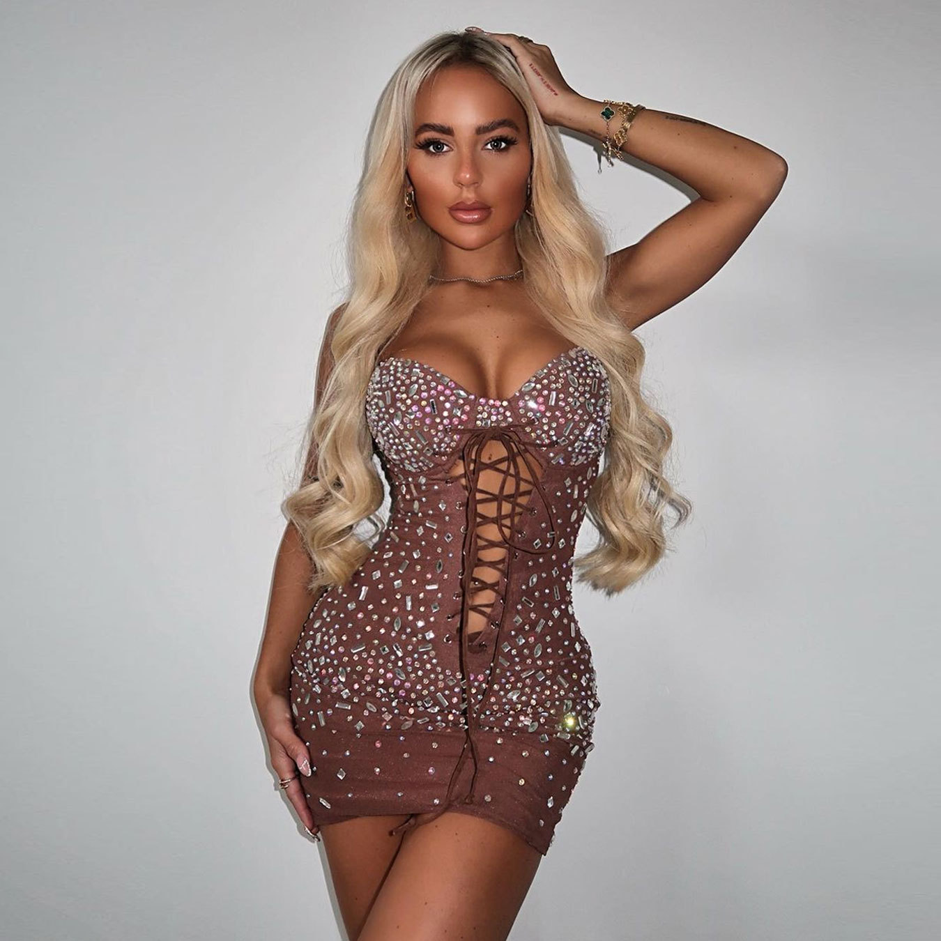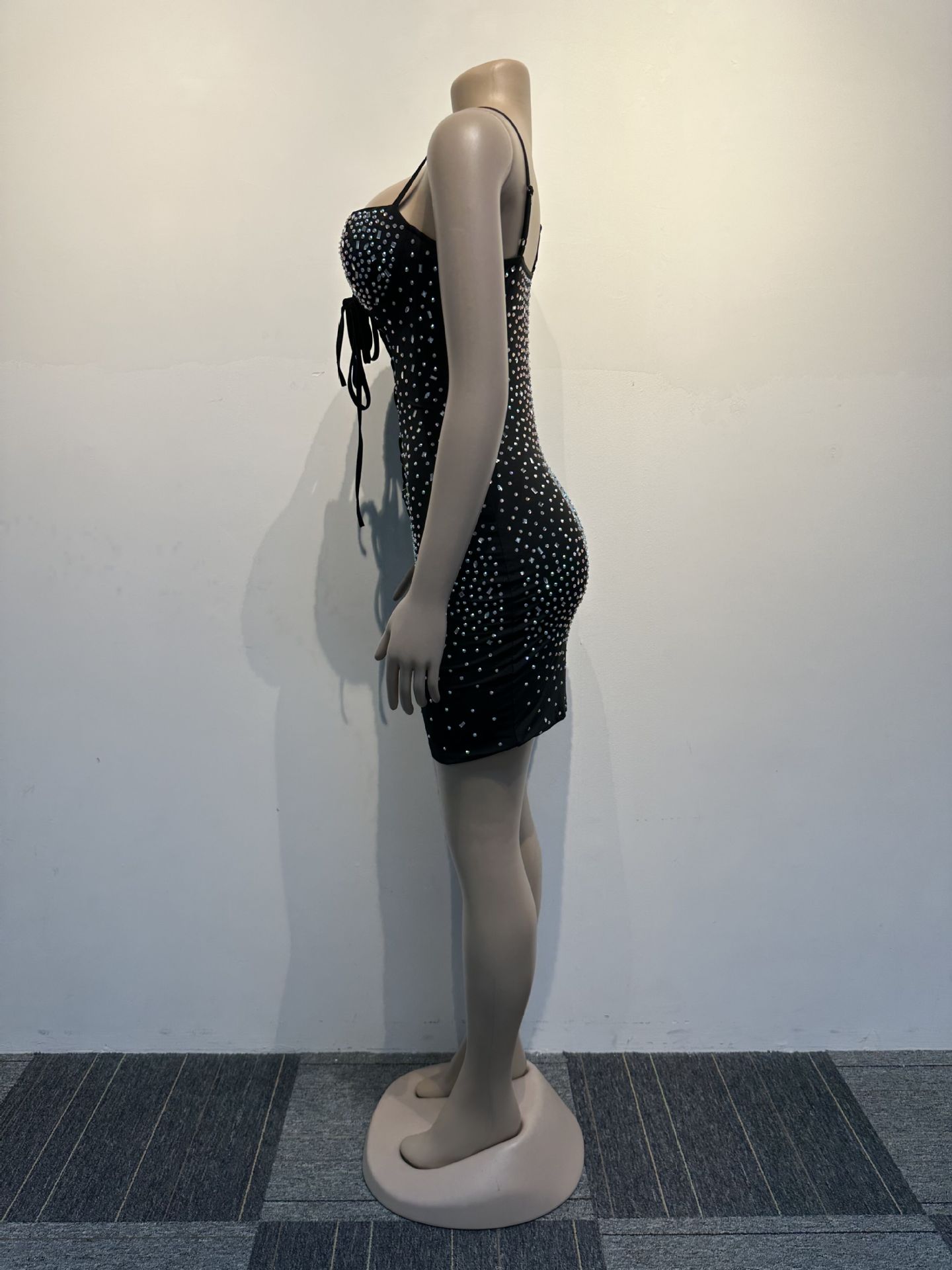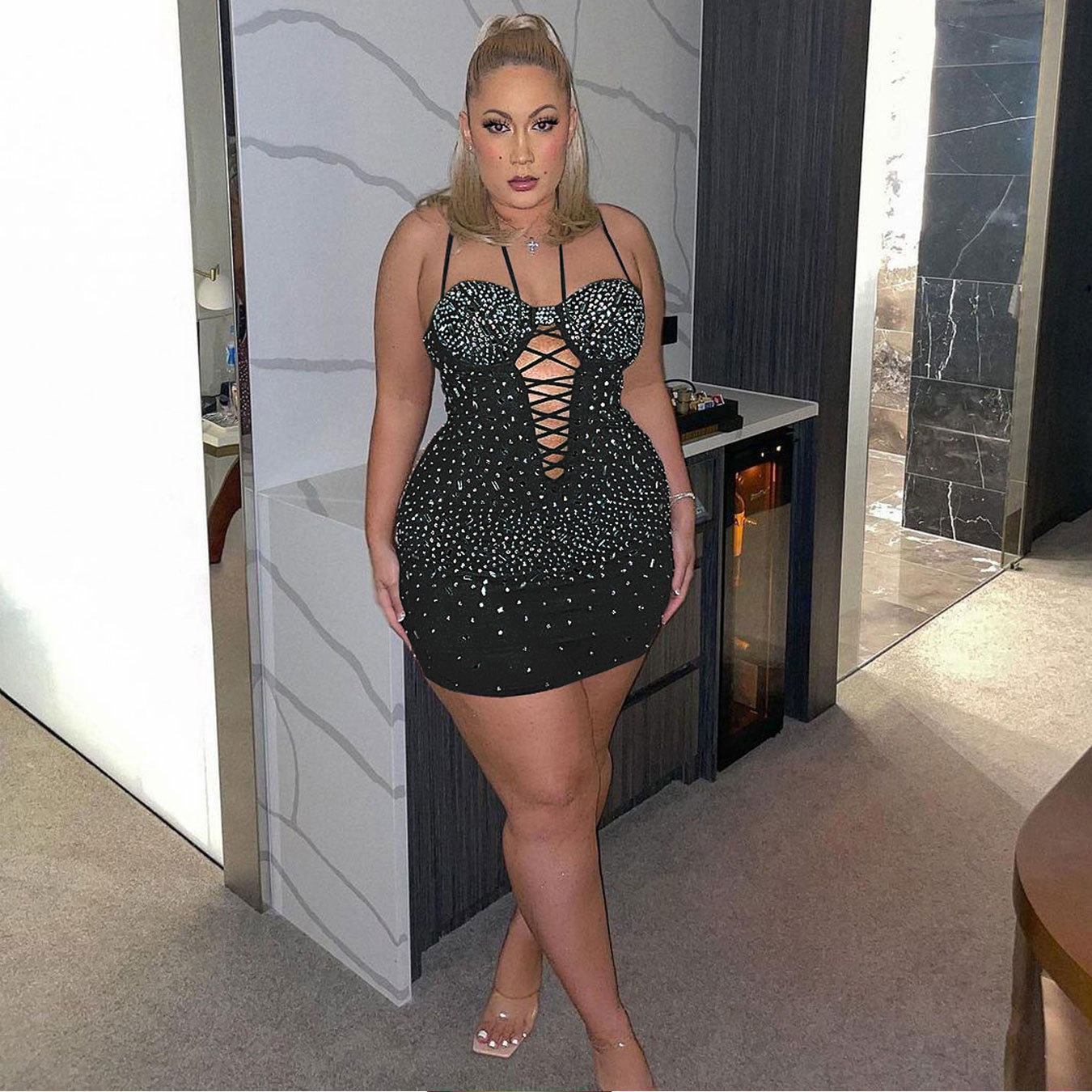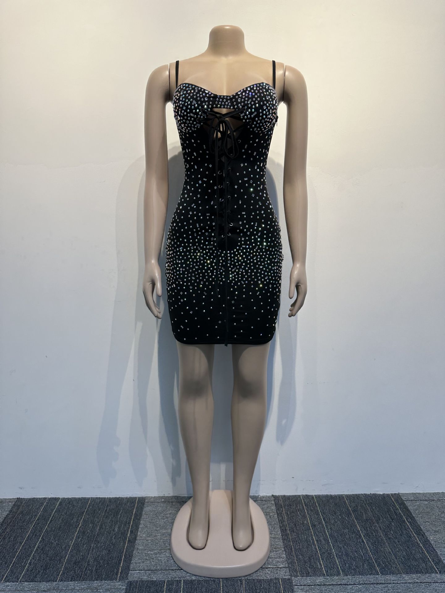 Style: Sexy Fit: Slim Fabric: Polyester Pattern: Non Element: Rhinestone,Cutout,Lace up Neckline: V-Neck Sleeve Type: Others Sleeve...