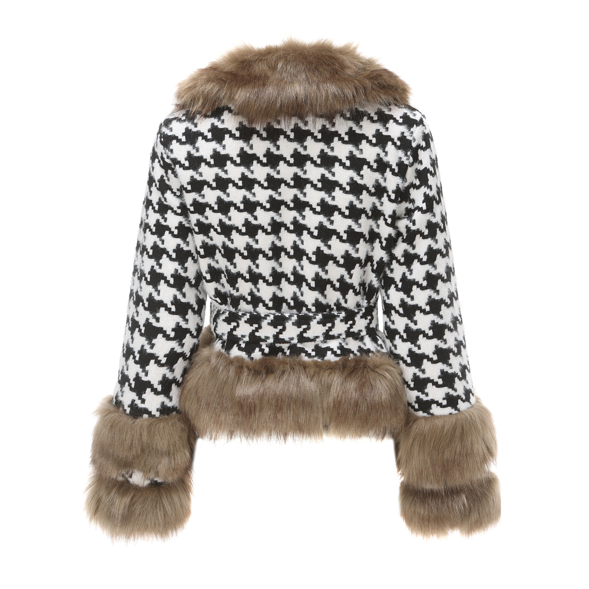 Women Autumn Winter Plaid Coat Detachable Short Fur Collar Tops Houndstooth