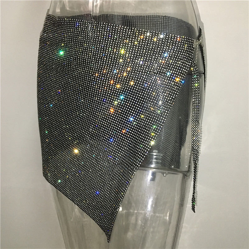 Women Clothing Rhinestone Rhinestone Skirt Hipster Sexy Slit Sexy Skirt
