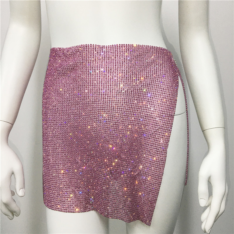 Style: Sexy Fit: Slim Fabric: Others Pattern: Non Element: Rhinestone,Split Dress/Skirt Length: Mini Rise: Low Rise Product...